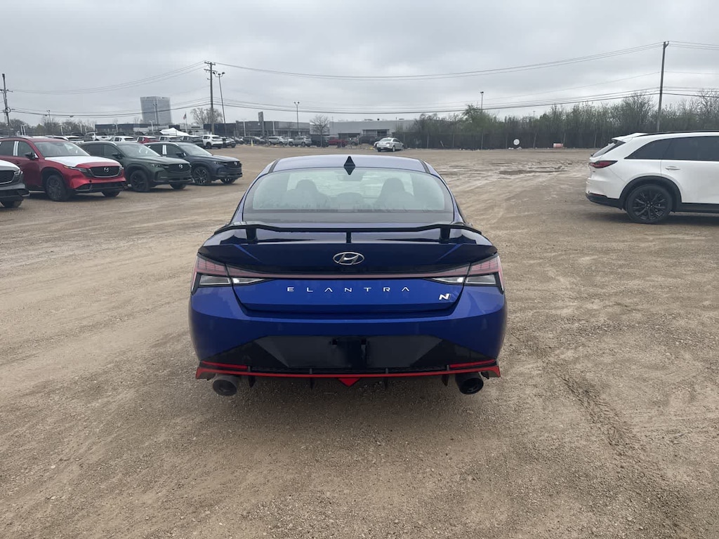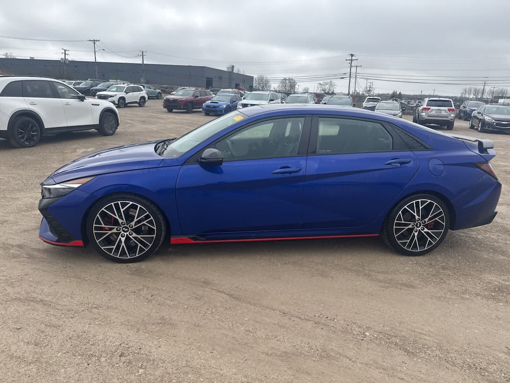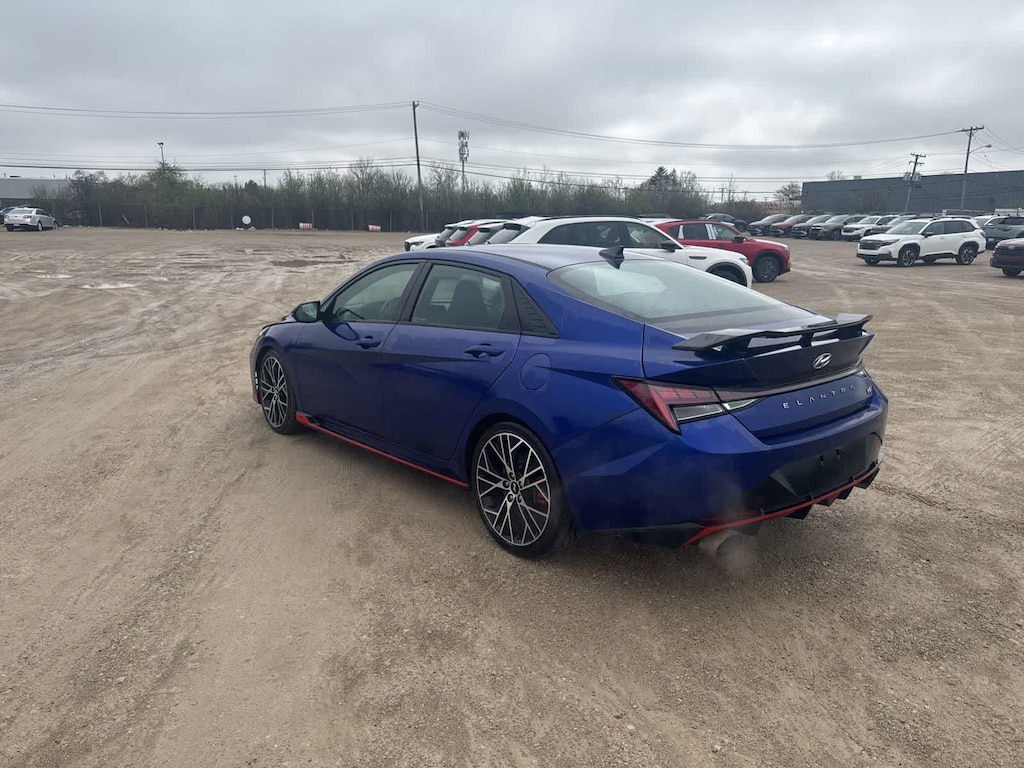 The Elantra Ns striking exterior in Blue showcases its sporty and aggressive design, turning heads wherever you go. Step inside and youll be greeted by a well-appointed interior that combines style and functionality. Enjoy the comfort of the N Light Heated Sport Bucket Seats, the convenience of the Bose Audio System, and the seamless integration of Apple CarPlay and Android Auto.